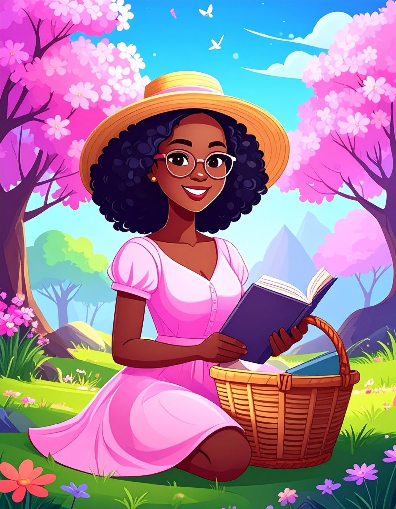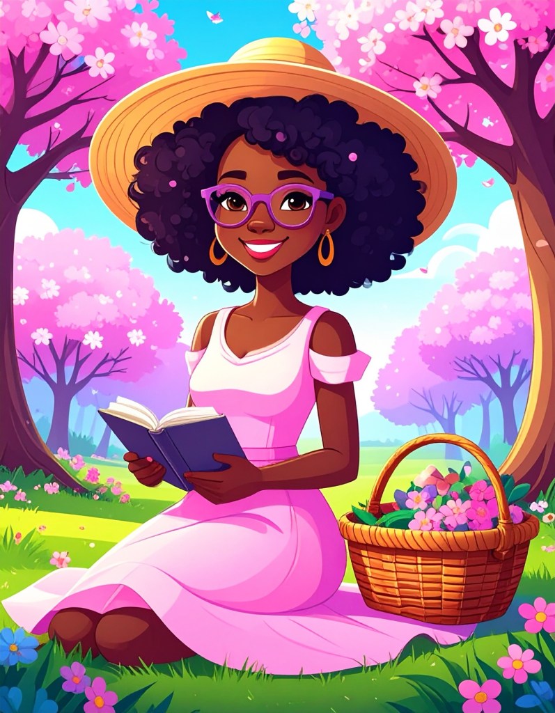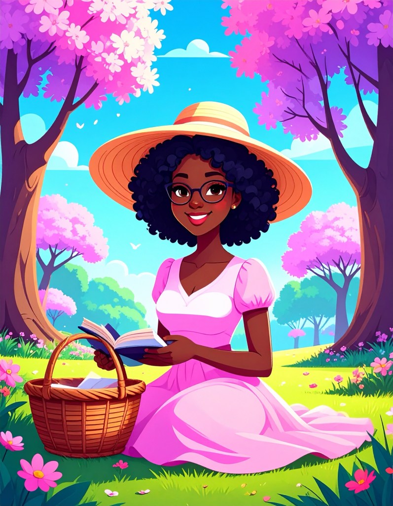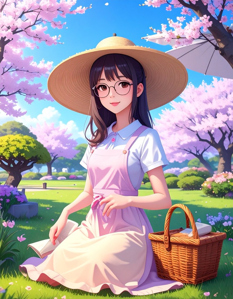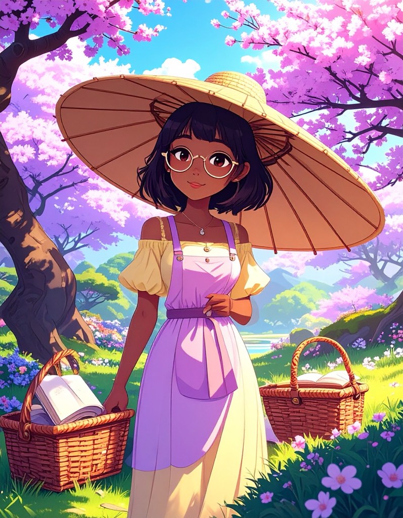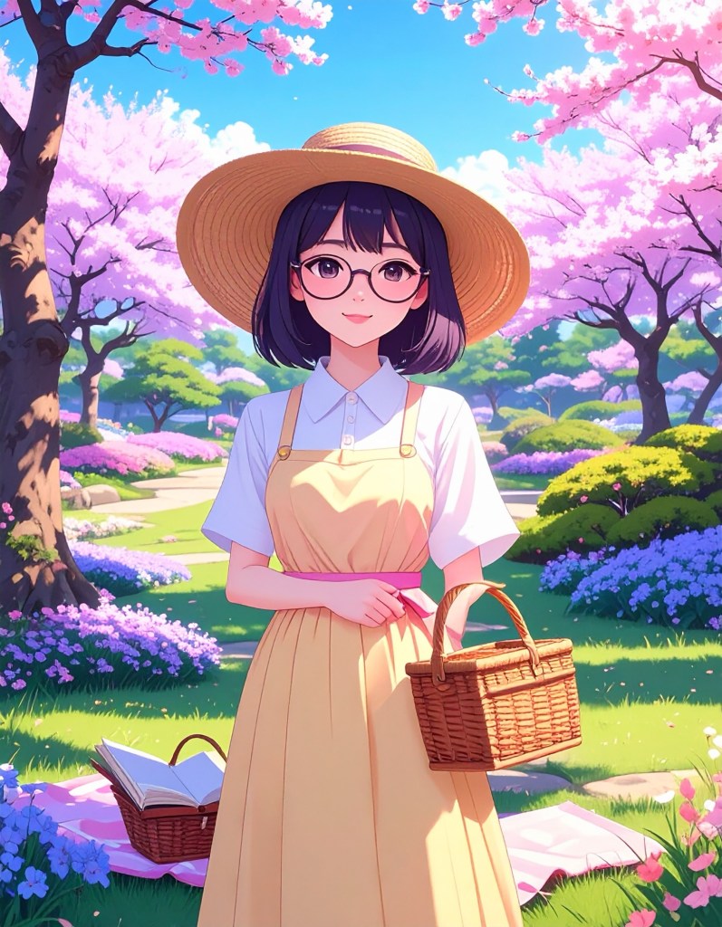 - Pastel Hues Implied: Sun-dappled light, pink blossoms, soft greens, glowing golds.